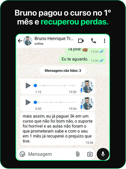 “Meu objetivo é te ensinar a lucrar sem medo, com consistência e controle emocional.”