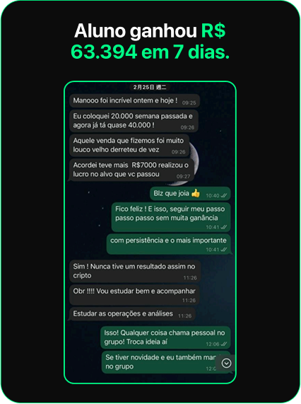 Operações simples, direto no celular. Siga as entradas, execute e veja os resultados. Com o método validado, você aprende, lucra e evolui todos os dias.